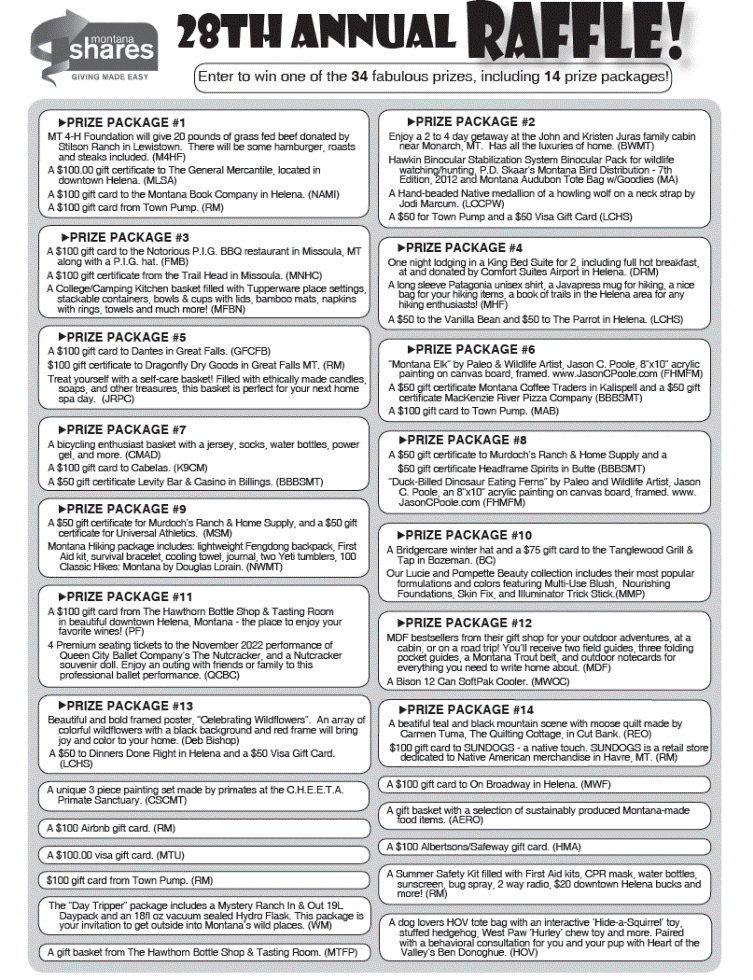 annual Montana Shares Raffle. Buy tickets and help the MAB by supporting